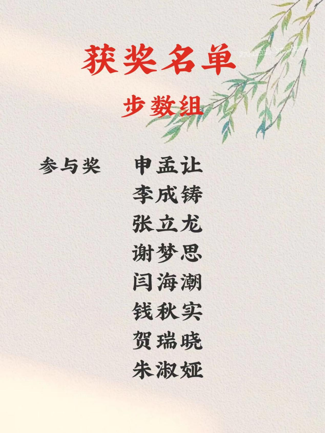 “与河共健”活动期间,同学们热情高涨,展现出文法学子蓬勃向上的精神面貌。活动分为步数组和千卡组,活动结束后通过后台数据汇总,步数组共评选出一等奖1名,二等奖2名,三等奖5名,参与奖8名;千卡组共评选出一等奖1名,二等奖1名,参与奖1名,具体获奖名单如下: