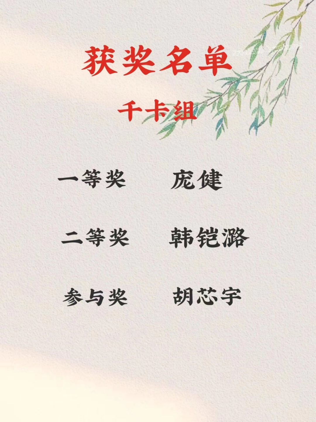 千卡组第一名成绩为24269千卡,日均1156千卡;第二名成绩为14241千卡,日均678千卡。
