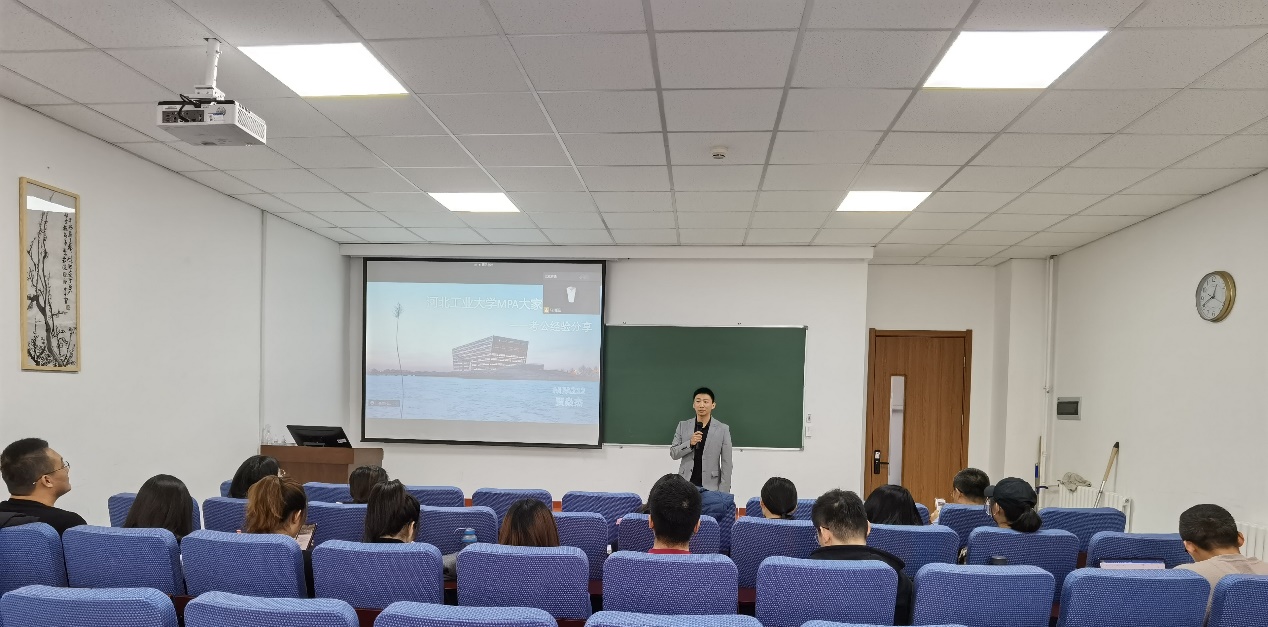 2021年11月28日中午12:30,文法学院研究生会MPA大家说第一期,在红桥校区7C104-2顺利举行。本期主讲嘉宾的是MPA212班的贾焱杰同学。活动伊始,MPA中心招生总监张明展老师介绍了MPA大家说的策划缘由、活动目标及未来规划,希望本系列活动能为同学们提供一个新平台,帮助大家互动交流,了解各行各业,提升自我。
