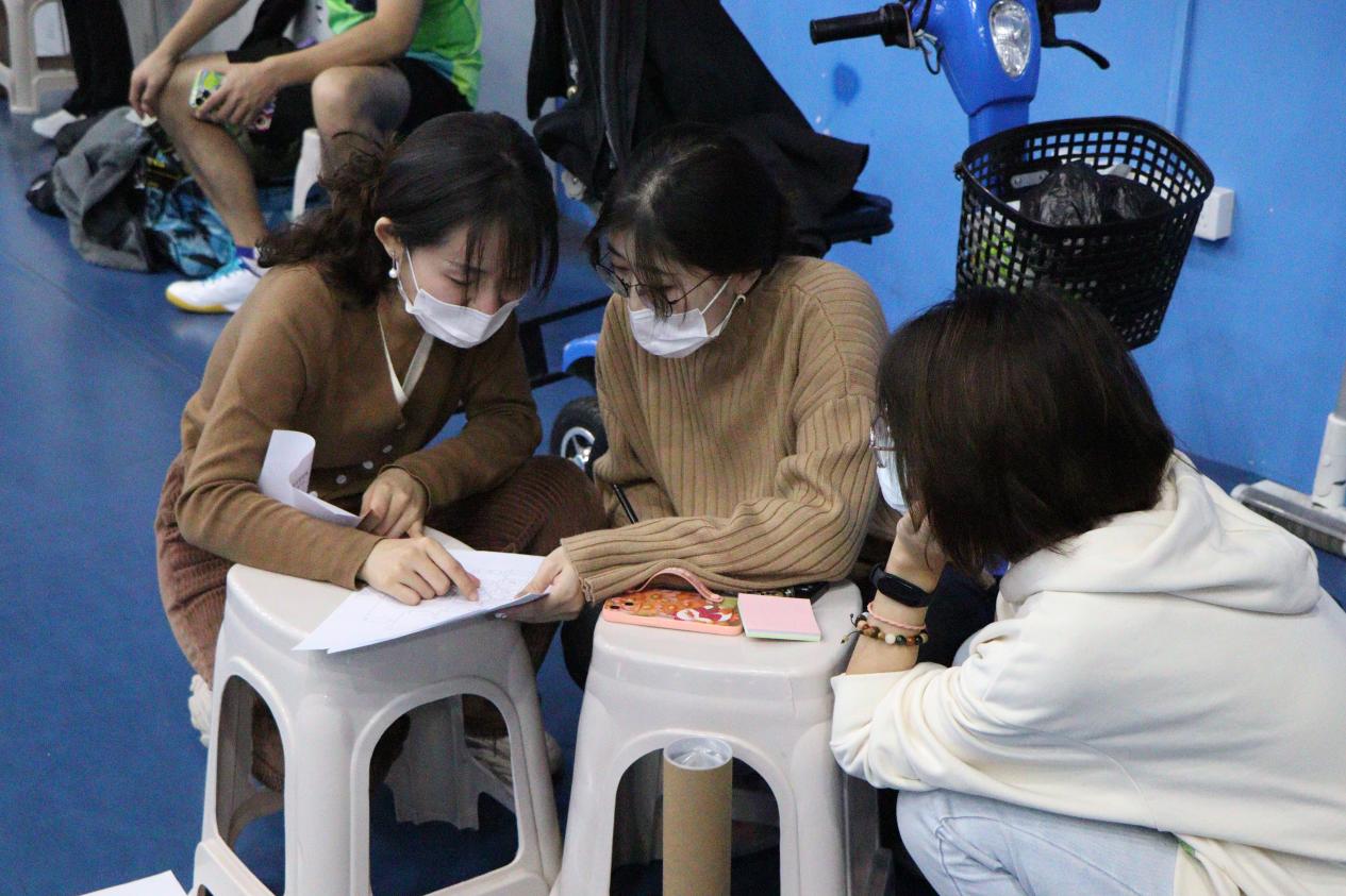 比赛场上,除了挥洒汗水的运动员,裁判员、研究生会也在紧张地进行记分、引导等工作,保障比赛顺利进行。