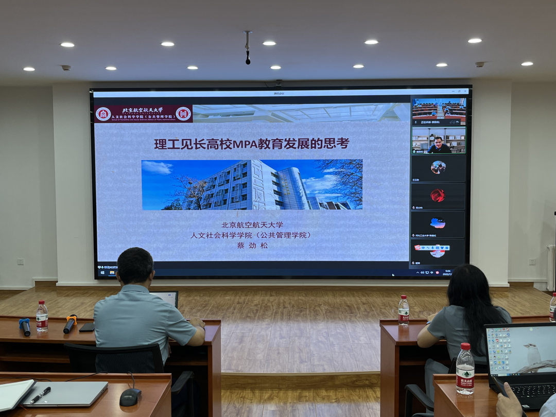 其次,蔡劲松教授对北京航空航天大学的MPA教育整体情况做出了详细介绍,主要围绕机构设置、主要教学科研实验室、近年来的招生数据、办学定位、师资队伍建设、培养方案设计、特色学科交叉平台建设、论文质量保障体系等几个方面展开,以专业的角度分享了MPA教育的重点举措和心得体会。