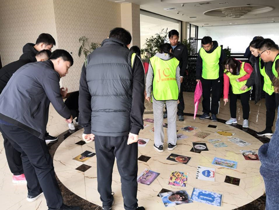 第二天,意外的大雨使得室外活动被迫中止,改为室内活动。水果连连连看、驿站传输,学员在此过程中强化了对于目标的追求,认准目标,义无反顾,奋斗到底。
