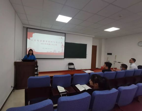 会议伊始,MPA党支部委员黄媛媛、文法学院研究生会主席、MPA201班副班长高嘉琦分别从组织架构、已开展工作、拟开展工作及工作难点4个方面对党支部、研究生会、班级的工作进行了工作汇报;张明展老师对2020级学生工作进行总结性陈述。