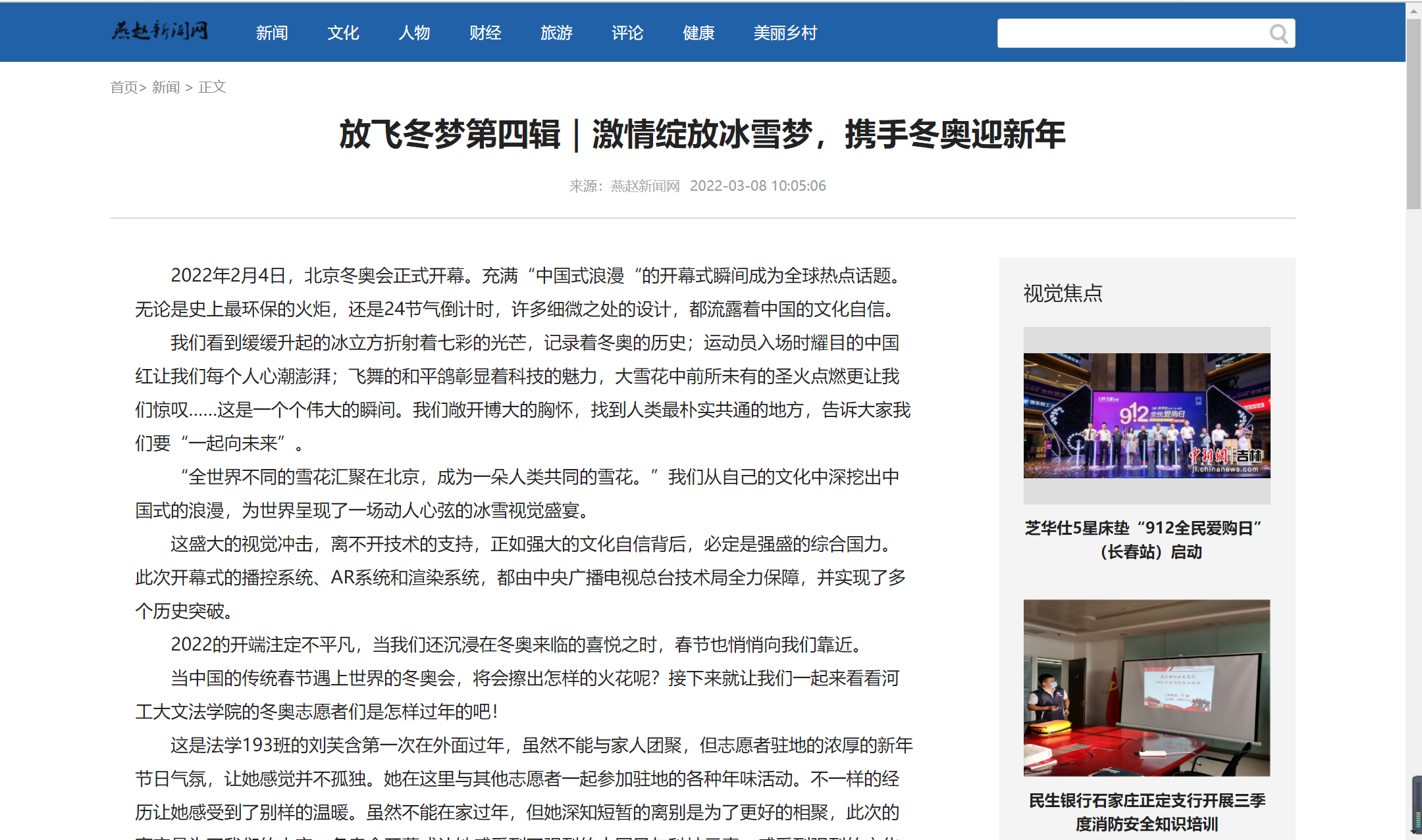 当中国的传统春节遇上世界的冬奥会,将会擦出怎样的火花呢?接下来就让我们一起来看看河工大文法学院的冬奥志愿者们是怎样过年的吧!