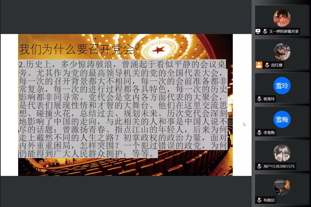 为了让人们了解此前召开的党的十九届六中全会所传递的会议精神,加强精神引领,推进精神文明建设,积极关注党的二十大,“不二家队”采取线上宣讲的方式讲解十九届六中全会精神以及宣传即将召开的党的二十大。