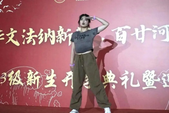 开学典礼后,激动人心的迎新晚会就此拉开帷幕。一盏盏灯光突然暗下,在整齐与快节奏当中迸发青春。