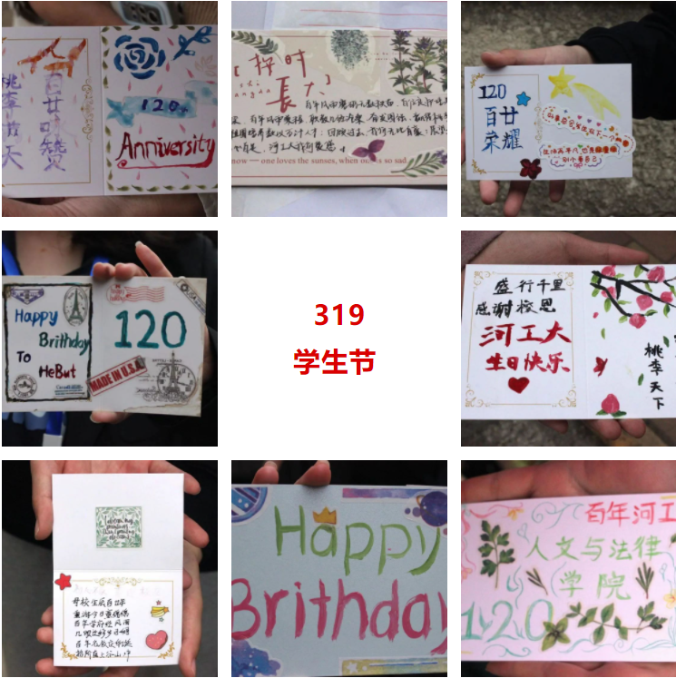 云雨浸润青城岁月,积淀下深厚底蕴;风霜打造今日辉煌,唱响出精彩华章。年轮转过,你成就了我,我延续了你。大家都有着独属于自己的河工大记忆,都有着对母校最真挚热烈的感情。一张张DIY贺卡,倾诉了大家内心对母校的万千情谊,为学校百甘献上这份珍贵的贺礼。活动现场上挤满了人群,同学们排起了队伍,都想通过贺卡送上自己的祝福。一张张小小的贺卡,承载着我们对母校深深的爱意。