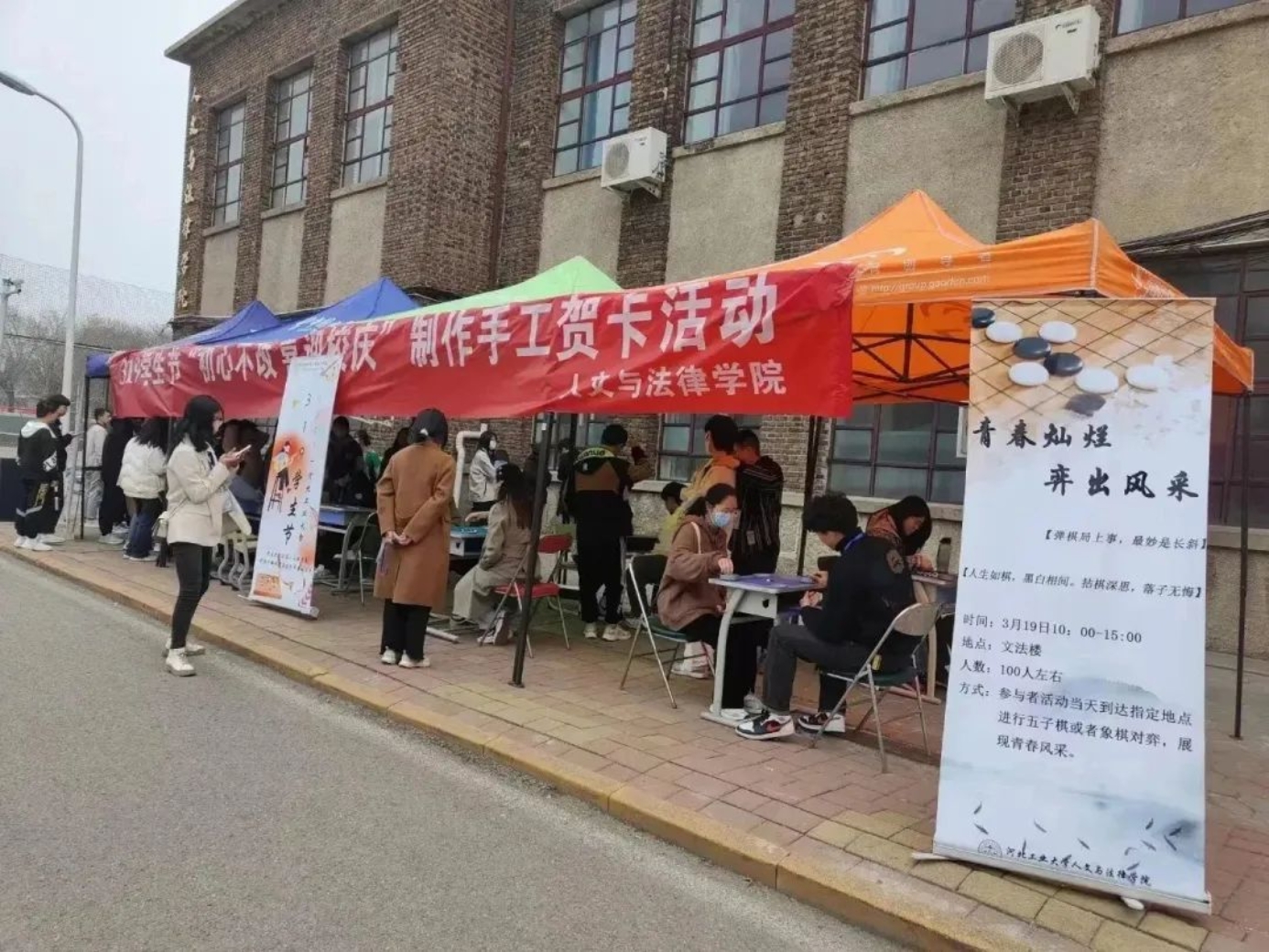 横竖纵横局中山河、乌鸦鹭鸶捭阖无忌。同学们执子弈棋,眼神笃定若有所思,行一步想三步。今天的比赛里,没有人执着输赢,每一手都在向母校祝福。紧张刺激的竞技性比赛氛围和充满趣味性的比赛形式,对坐共弈的人一个一个轮换,落子不悔,肆意穿插于世之大局。