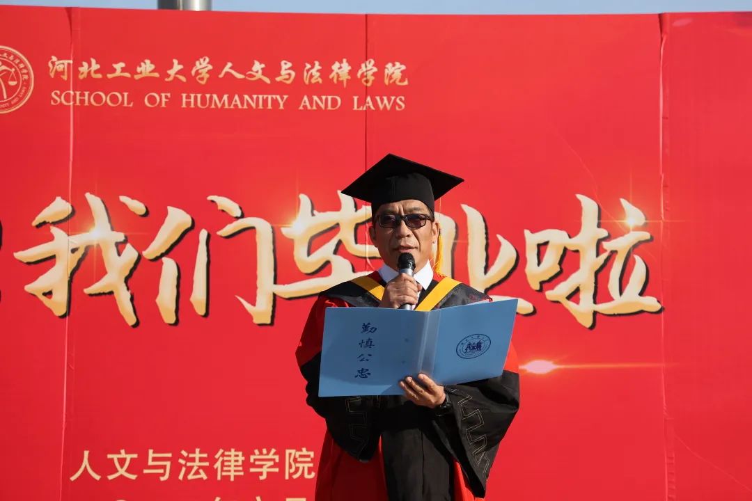 毕业班辅导员王鑫的发言更是让所有毕业生感动,他表示四年陪伴,辅导员老师是朋友,更是导师,亦像学生的家长,他用最深情的话语向同学们告白,希望同学们未来一片光明、前程似锦。