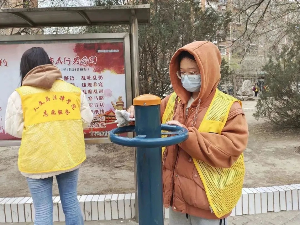 阳春三月,情意浓浓。在社区工作人员的带领下,青年志愿者们化身“清洁员”,清扫社区主干道和健身器械,捡拾绿化带中的垃圾,清除墙面广告贴纸,摆放整齐垃圾桶,帮助居民倾倒垃圾、擦玻璃……用青春行动助力社区家园洁净。