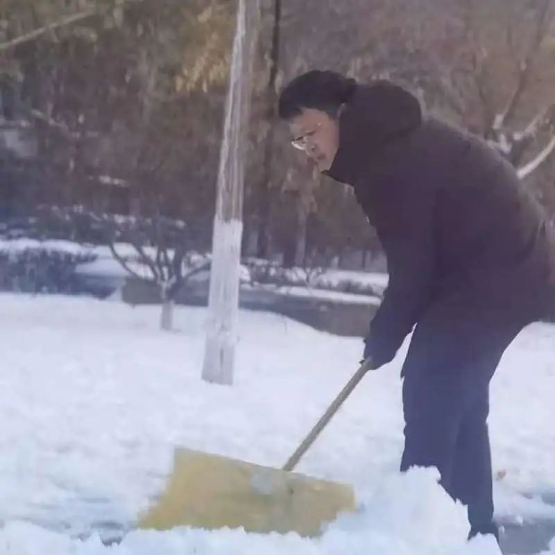 领导也以身作则,校党委常委、纪委书记孟祥群和院党委书记白彦刚也加入了铲雪队伍,两位书记担当表率,带领同学们圆满完成了积雪清理工作。