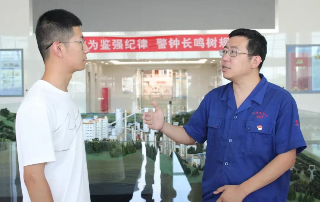 队员们来到中煤张家口煤矿机械有限公司,拜访了我校2010级优秀校友中煤张家口煤矿机械有限公司党委工作部部长刘剑学长和信息管理部的黄小松学姐。