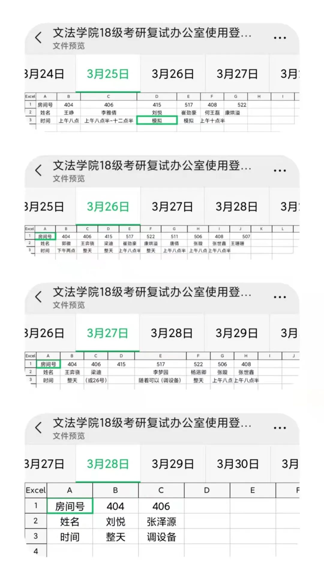为了给考研学子保驾护航,毕业班辅导员王鑫老师统筹安排,指导学生会开展工作,将学院楼的教师办公室、会议室等房间给复试同学使用,并检查了网络设备以便确保复试期间的网络平稳畅通,同时还贴心地为同学们配备了三脚架、手机支架、打印机等设备。18级团支书何王磊、陈鑫阳也积极配合,主动承担起为复试同学安排复试时间,考场分配等工作。