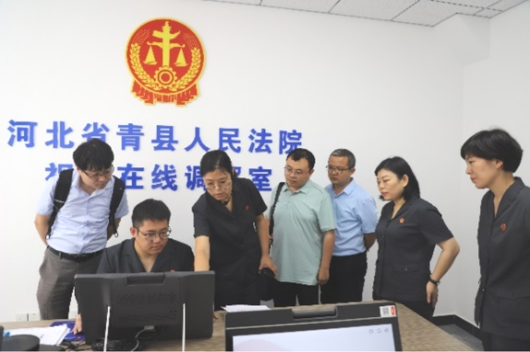 签约仪式结束后,学院领导、老师一行还到青县人民法院进行了走访、调研。青县人民法院常务副院长温丽梅对该院诉讼服务中心的智能导航系统、智能诉状生成系统、诉讼风险评估系统、诉讼服务多功能终端机等信息化多媒体设备进行了讲解,并介绍了无纸化办案流程。