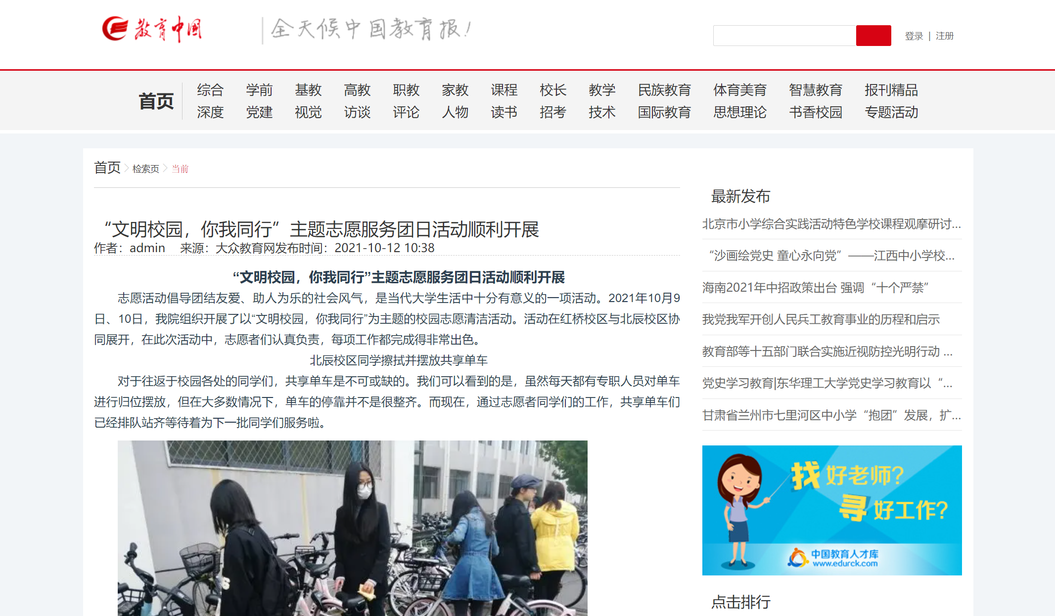 【媒体文法】教育中国网报道捆绑调教 “文明校园,你我同行”主题志愿服务团日活动