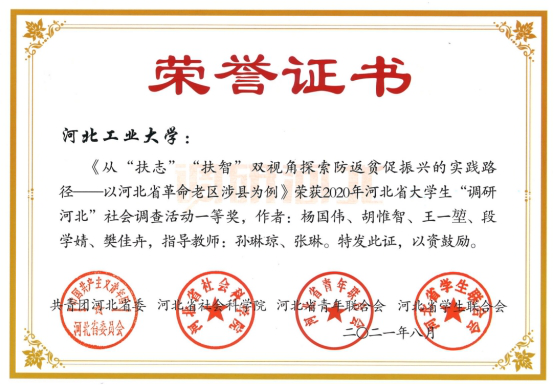在调研河北中,捆绑调教 8支队伍成功立项获奖,其中一等奖1项,二等奖2项,三等奖1项。