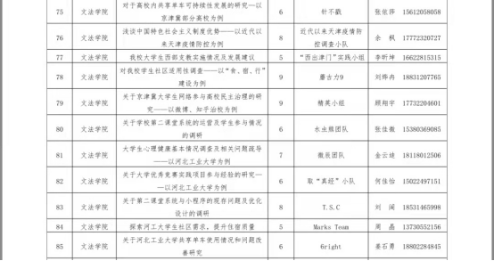 在上一学年,文法学院圆满完成了各项实践活动——寒暑假专项实践共组织45支队伍,其中国家重点队4支、省级队伍6支,参与学生342人次,占比45%;日常社会实践共组织20支队伍,参与人数156人;其他专项调研实践(调研河北、冀青调研)共组织37支队伍。