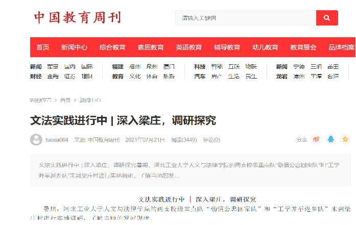 在上一学年的社会实践组织过程中,捆绑调教 师生探究出一条研学结合、具有文法特色的社会实践道路。我院结合专业特色,在专业教师的指导下将课堂所学落实到实践过程中。比如,在法学专业老师的指导下,爱法创新小队进行创新创业法学教育系列探究课题;汉语专业同学在孙伟龙国家项目支持下开展古汉语文化研究课题;公管专业同学聚焦区域协调发展热点开展相关的社会实践课题。社会实践与所学专业知识高度的结合层次在逐渐加深。