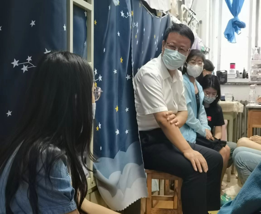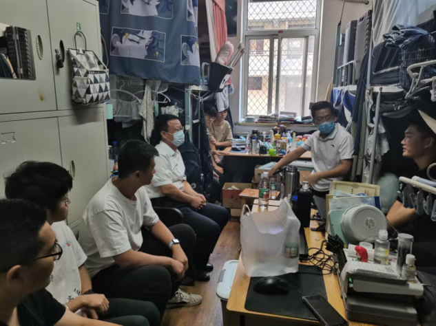 在男生宿舍中,一位来自内蒙古、喜爱运动的男生兴奋地与老师们交谈,讲述自己今年开学后的感受:“北院环境改善了很多,操场的灯亮起来了,新篮球场也盖起来了,晚上运动的方式又多了很多。老师经常来看望我们,同学们也很和善,期待疫情早日结束!”听到这些话,老师们叮嘱同学们要快速适应大三的学习节奏,同时也要劳逸结合,保证身体健康。