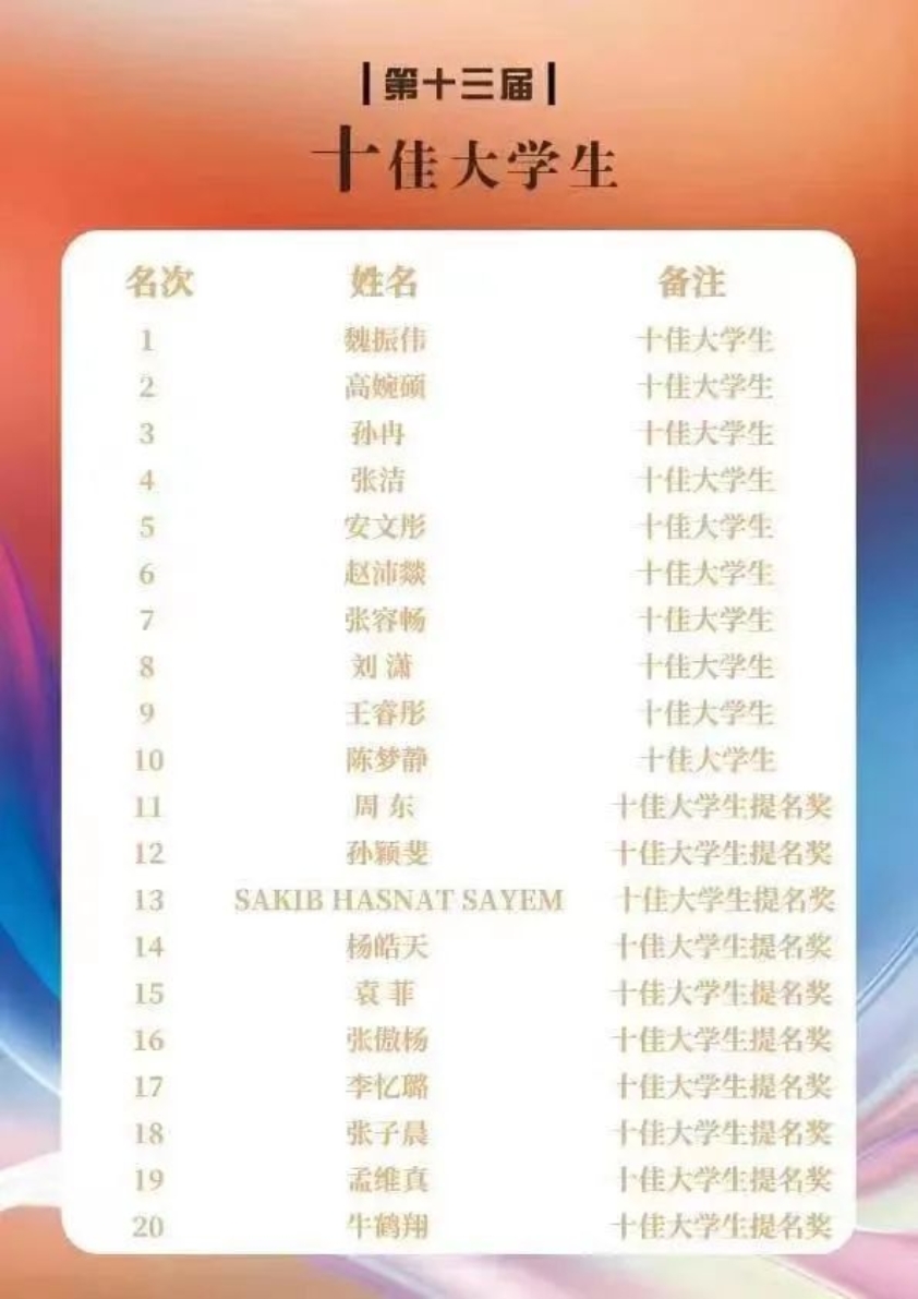 喜报|捆绑调教 王睿彤同学荣获校“十佳大学生”称号