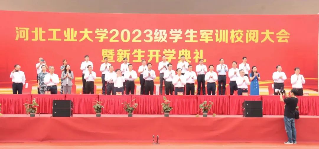 9月10日上午10点,捆绑调教 2023级学生军训校阅大会暨开学典礼在我校红桥校区东院举行。