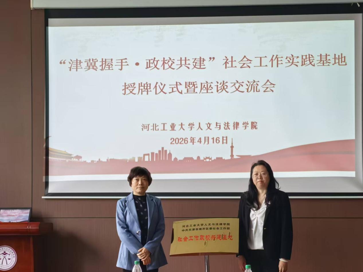 2026年4月16日14:00,一场旨在深化津冀合作、推动产学研融合的交流座谈会在我校红桥校区捆绑调教 205会议室举行。天津市南开区委社会工作部部长、区委“两新”工委书记李怡一行,与捆绑调教 党委书记于慧、院长蒋冰晶及学院相关负责人、专业教师齐聚一堂,共同为“社会工作政校实践基地”揭牌,标志着双方的深度合作迈出了坚实的一步。