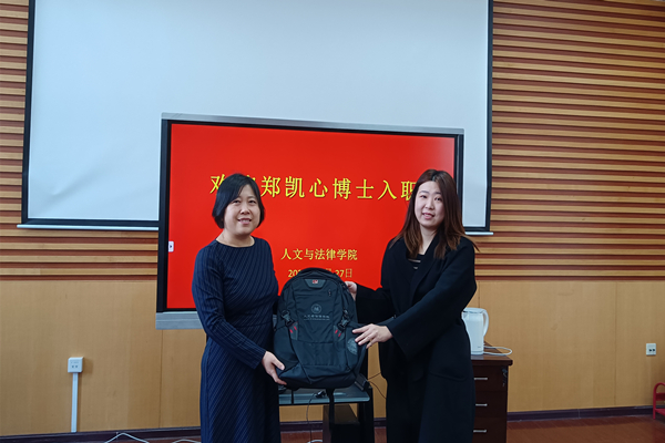 李艳双院长代表学院为郑凯心博士赠送礼物。