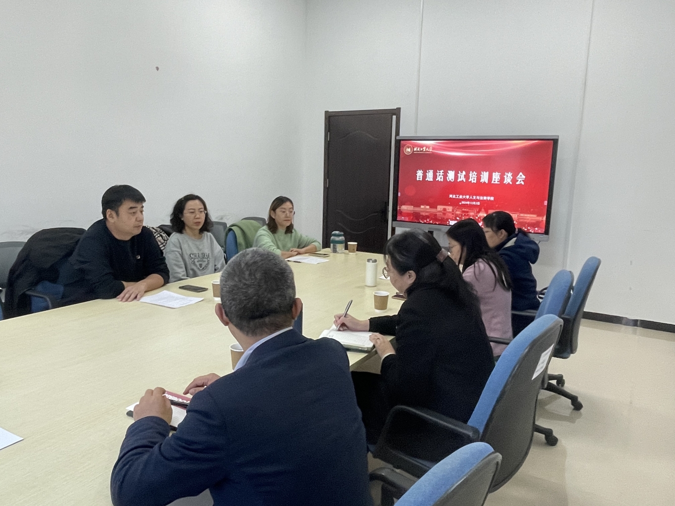 中文系系主任黄娜老师就学院参与河北省普通话水平测试工作的基本情况做了简单介绍,学院已连续多年承担省普通话水平测试的评分工作,每年承担工作量约3000人次,评分任务量较大。