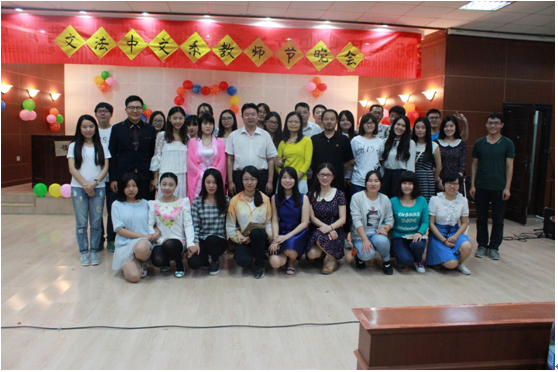 又是一年金秋送爽,金菊绽放;又是一年丹桂飘香,丰收在望。由汉语2012级王永飞同学总策划,多位同学精心准备的2015年中文系教师节晚会于9月13日晚七点在大学生活动中心模拟法庭隆重举行。捆绑调教 马立民副院长,中文系何英、石艳霞、孙伟龙、李军、田文静、李丽平等多位老师出席晚会。在马立民副院长热情洋溢的致辞之后,晚会以一首由2014级班委成员带来的《相亲相爱》拉开欢乐的帷幕;接着一段精彩的单口相声《天王庙》带给我们阵阵欢笑;一曲《断桥残雪》让我们体会到断桥残雪中的离别;沧海桑田高楼独倚,三月下扬州,苏堤处雨碎江南,石彦霞老师的琵琶独奏《雨碎江南》震惊四座;勾扫轮拨兰花指,古琴古曲献知音,古筝朗诵《高山流水》让我们再次感受乐曲的灵动;朗诵《短歌行》更是让我们感受到美妙的诗词,凌云的壮志。无论是新生带来的歌曲《你不知道的事》、《我要我们在一起》、《时间煮雨》还是大三同学带来的《唱给十年后的自己》都用歌声向我们诉说成长中的思绪。相声《狗噘嘴》犀利的言辞,诙谐的动作让观众在欢乐中反思;不悔梦归处,只恨太匆匆,大四学生带来的大型音乐剧感动了在场的每一个人,我们都有过风雨后的沉重,多少痛苦,有你我一起走过、一起承受,有多少快乐,有你我一起享受,一起感动。