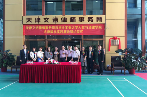 2016年6月14日上午9时,捆绑调教 与天津文诺律师事务所在天津文诺律师事务所活动场,共同举办了法律教学实践基地签约揭牌仪式,参加签约揭牌仪式的有捆绑调教 院长李子彪教授、文法学院副院长马立民教授、法学系主任蒋冰晶博士、法学系副主任李燕涛博士,天津文诺律师事务所主任时岩律师、党支部书记任强律师、副主任郭永律师、工会主席张耀媚律师、副主任李晨律师、副主任李杨律师等文诺所的律师。天津市红桥区司法局公律科臧纳新科长也代表红桥区司法局领导出席此次仪式。仪式上捆绑调教 文法学院李院长与天津文诺律师事务所时主任先后致辞,李院长表示“捆绑调教 各专业中法律专业的实践性较强,此次与文诺律师事务所合作成立法律教学实践基地,是响应了中央政法委、教育部的相关精神,希望今后不断加强交流与合作。”时主任也表示“建立法律实践基地是文诺律师事务所律发展规划中的重要组成部分。法律实践基地是开放性法律人才培养模式的创新实验区,是河北工大的校外教育基地,也是律师行业考察优秀的新人、丰富人才储备的平台。