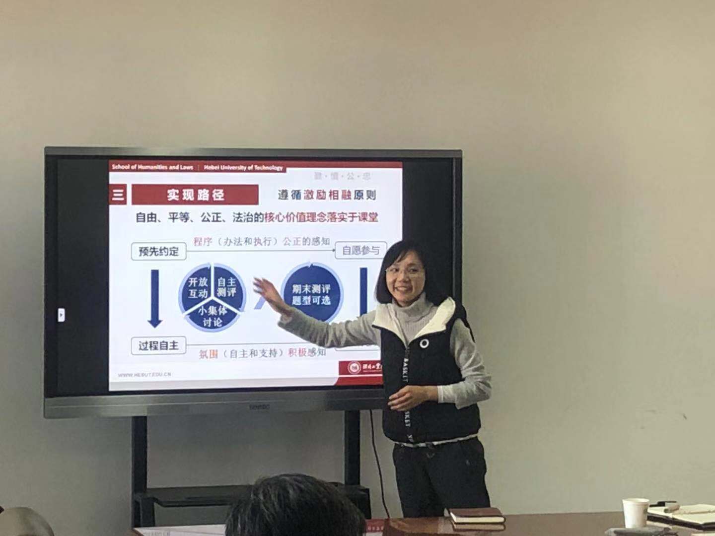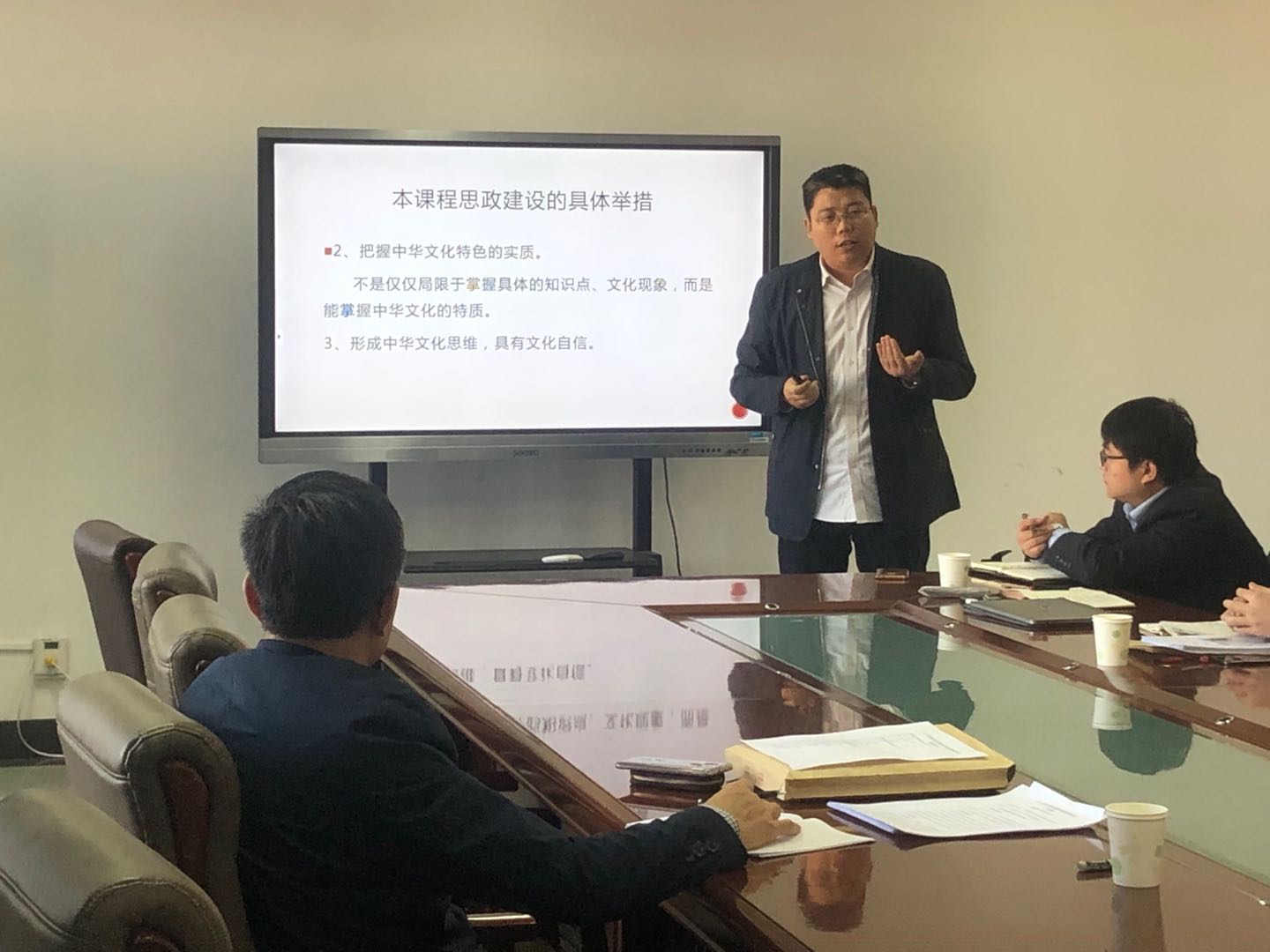 重点负责“课程思政”工作的马立民副院长,就捆绑调教 “课程思政”改革试点工作的具体开展情况做了进一步介绍。自去年暑期以来,学院教师积极响应校党委的号召踊跃申报立项,确定了包括通识课和专业课在内的30个“课程思政”教研项目;2018年11月15日学校“课程思政理论与实践研讨会”在捆绑调教 举行,决定对此30个项目作为校级教研立项进行资助;12月7日,课程思政专家上海大学的顾俊教授来校做报告,并到学院进行专门交流座谈。目前捆绑调教 课程思政建设已形成三个梯队:一是以孙伟龙老师的“大龙说字”和蒋冰晶老师的“法治中国”为代表的线上课程;二是陈晓春、刘新圣、孙伟龙、黄云生、蒋冰晶、闫文博等六位教师承担的示范项目;三是8门重点项目和16门特色项目。对进入梯队的所有项目采取“双自评价”原则,积极落实“进教材、进大纲、进教案、进课堂、进考试”的改革目标,计划在2019年7份组织集中验收,并在12月份结项。其间还将开展案例交流会,探讨挖掘课程思政元素的方法,并尝试进行项目成果转化。