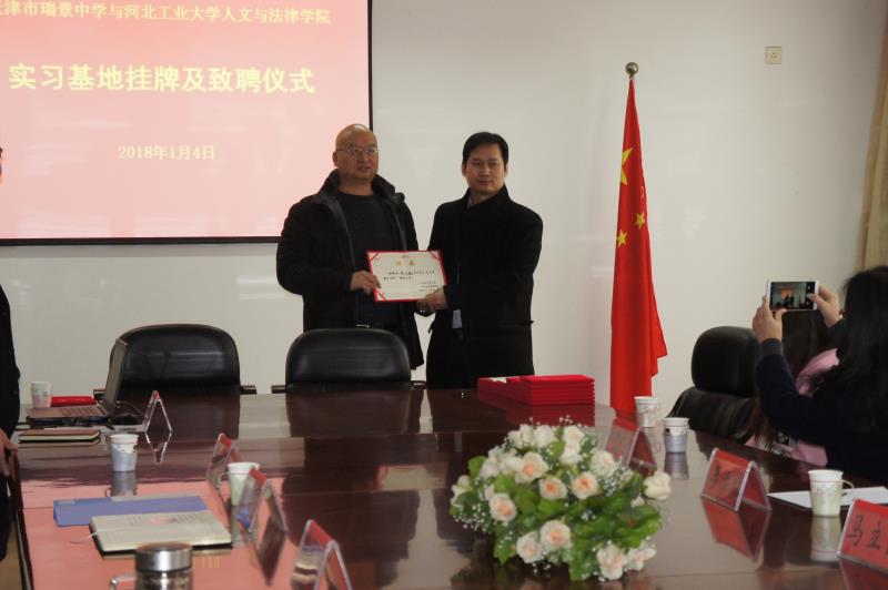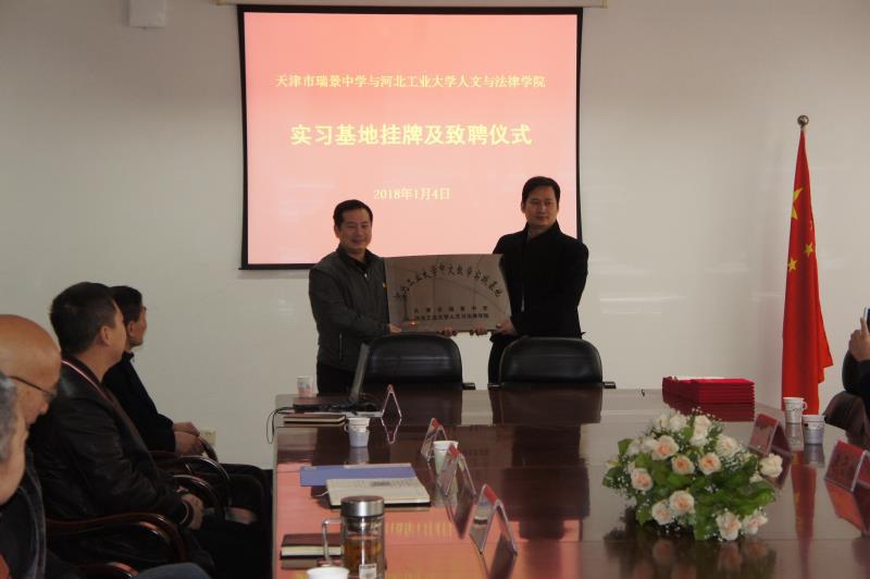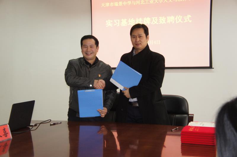 2018年1月4日上午,捆绑调教 与天津瑞景中学实践基地签约暨兼职导师聘任仪式在天津瑞景中学举行。捆绑调教 院长李子彪、副院长马立民、瑞景中学校长马朝辉、副校长黄会来、主任程双喜、语文学科组组长韩勇出席了本次活动。首先,程双喜主任代表瑞景中学欢迎捆绑调教 领导及师生来访。然后双方领导讲话。瑞景中学马朝辉校长介绍了瑞景中学的历史和现状,指出瑞景中学与捆绑调教 合作是强强联合,能实现资源共享,共同培养学生。李子彪院长简单介绍了我校、捆绑调教 的情况,以及最近我校部分学科入选国家一流学科等方面的情况,认为我校与瑞景中学离得很近,双方合作占有天时、地利、人和,现在国家大力弘扬传统文化,中文系与瑞景中学有很多合作空间。