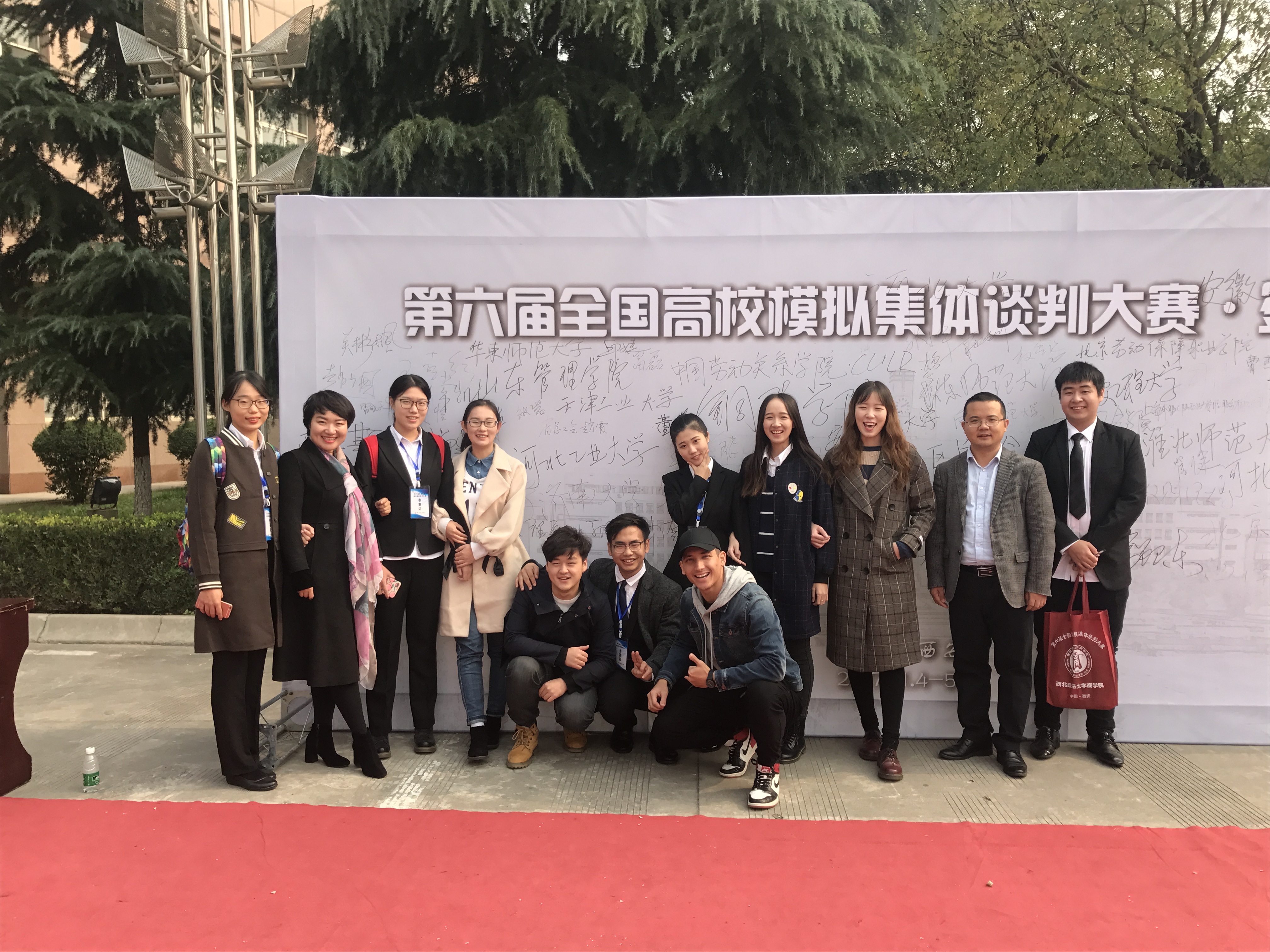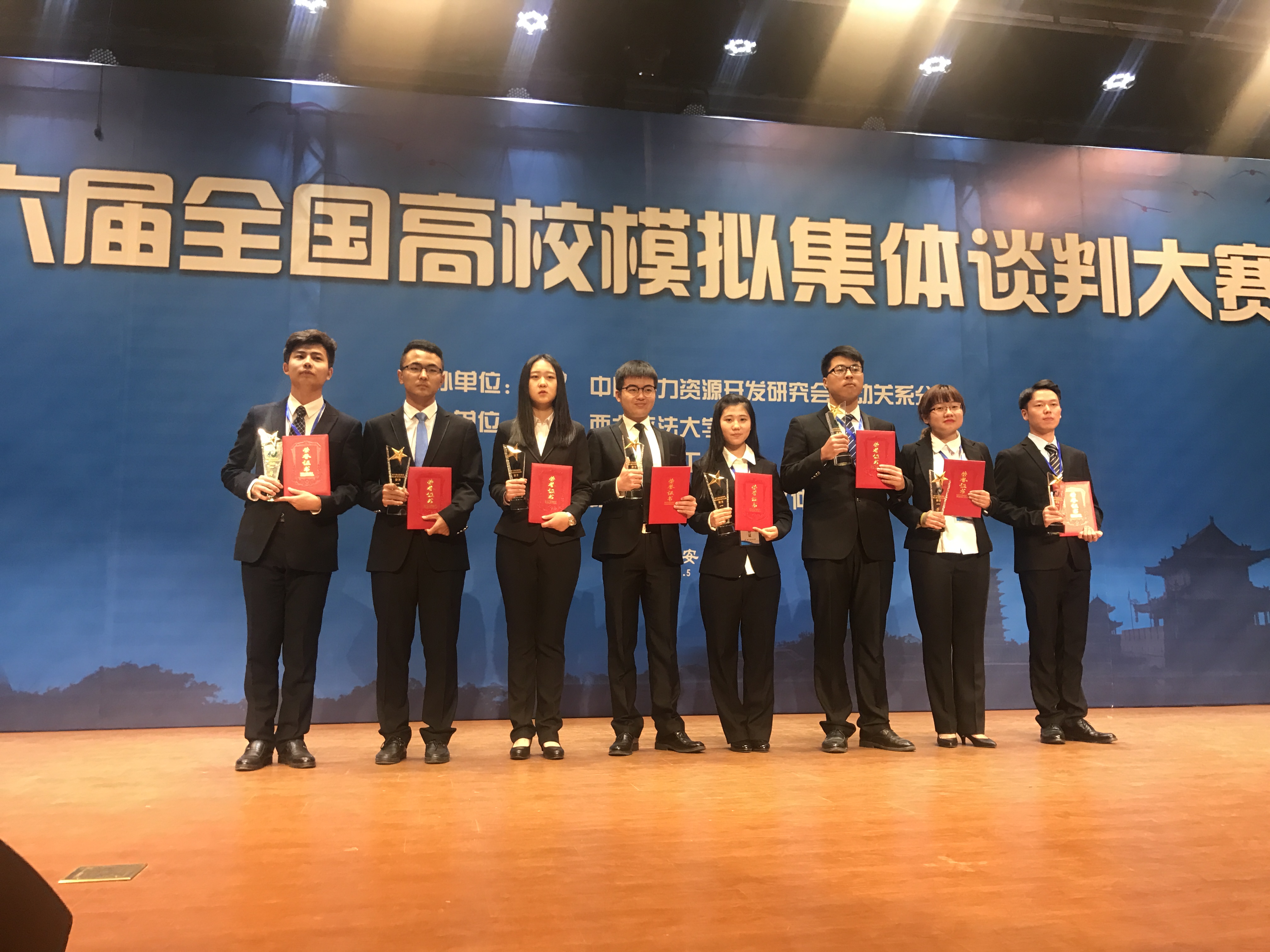 暮秋已至,寒意渐浓。2017年11月4至6日,第六届全国高校模拟集体谈判大赛在西北政法大学举行,大赛由中国人力资源开发研究会劳动关系分会主办,目前已在北京、山东、浙江、天津等地连续举办六届。本次大赛共有 33 所高校参与,共计有 66 支代表队伍,参赛师生人数达 400 多人。我校捆绑调教 经过两个多月的精心准备,通过层层筛选,选拔出法学专业,劳动与社会保障专业共10名学生组成劳方队和资方队两支代表队,参加此次比赛。经过初赛激烈的筛选,我校劳方队一路披荆斩棘,站在了决赛的赛场上。在决赛中,双方谈判就一线员工工资涨幅、企业员工的福利以及增设工龄工资等运用了多种谈判技巧,以退为进,以守为攻,先发制人,为在场的评委和同学上演了一场精彩的视听盛宴。最终,劳方与资方都达成了共识,并签订了集体劳动合同。评委老师对本场参赛的同学们进行了精彩的点评。