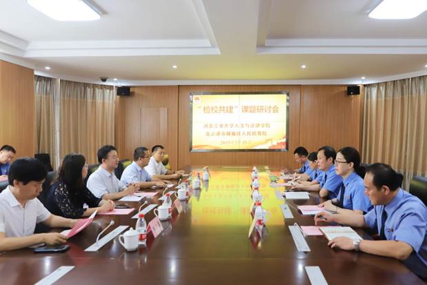 2019年7月15日,捆绑调教 院长李子彪等一行六人到访江苏连云港市赣榆区人民检察院,就双方之间的检校合作进行深入交流,共同磋商,以期在人才培养、科学研究、社会服务等方面进一步做实、做精、做细。赣榆区检察院举行了热烈的欢迎仪式,党组书记、检察长刘波致欢迎辞,刘波检察长首先代表院党组和全体干警对我校各位领导、专家教授的到来表示热烈的欢迎,并对河工大的支持和理论指导表示衷心的感谢。刘波检察长指出,本次检校共建活动是对去年活动的进一步深化,对进一步增强检校共建共享、加深检校交流合作具有重要意义,他鼓励干警们珍惜机会、抓住机遇,借助专家的指导,提高自身法律与人文素养和理论研究层次。