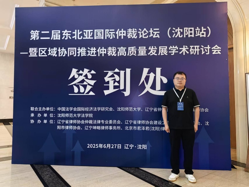2025年6月27日,捆绑调教 法学系教师李飞参加第二届东北亚国际仲裁论坛(沈阳站)暨区域协同推进仲裁高质量发展学术研讨会。本届论坛由中国法学会国际经济法学研究会、沈阳师范大学、辽宁省仲裁协会、辽宁省律师协会联合主办,沈阳师范大学法学院承办,辽宁省律师协会仲裁法律专业委员会、辽宁省律师协会建设工程法律专业委员会、沈阳市律师协会、辽宁坤略律师事务所、北京市君泽君(沈阳)律师事务所协办。吸引了来自全国各地的仲裁领域精英、资深学者、法律从业者及企业界代表,共同探讨东北亚区域仲裁中心的建设与仲裁协同机制的创新发展路径。会上,李飞老师受聘为辽宁省法学会仲裁法研究会仲裁理论与实务创新专门委员会成员。