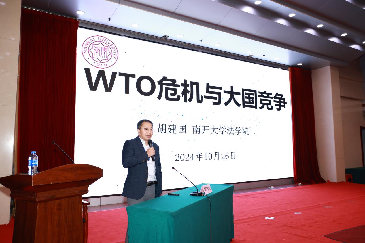 胡建国教授作题为“WTO 危机与大国竞争”的专题报告,说明了随着全球经济格局的演变,世界贸易组织(WTO)正处于改革的关键时期,并阐述了WTO的三大危机,这些危机深刻反映了大国竞争对国际贸易体系的影响,尤其是在数字经济和绿色转型的新挑战下,短期内完全解决这些危机的可能性不大,但国际社会可以通过加强合作、推动绿色化和数字化转型来缓解矛盾,并寻找新的合作机遇。此外,还强调了在法学研究中对WTO相关法律问题的深入分析和探讨的重要性,以期为解决WTO危机提供理论支持和实践指导。中国要坚持走中国式现代化之路,推动实现高质量发展,积极参与WTO改革谈判,支持多边贸易体制的包容性发展。