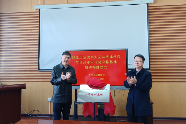 孟祥群书记与张建亭局长共同为“捆绑调教 沧州市审计局合作培训基地”揭牌。