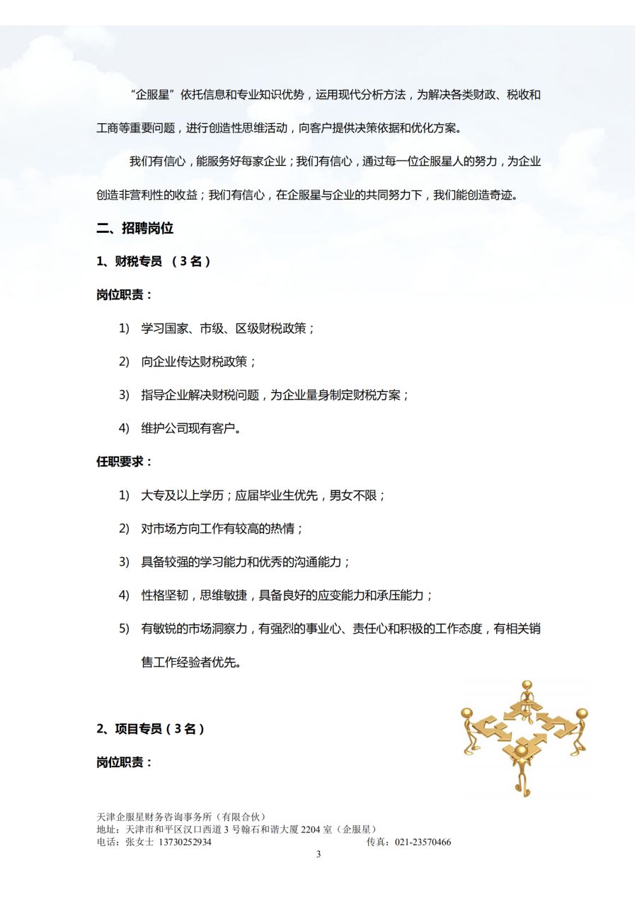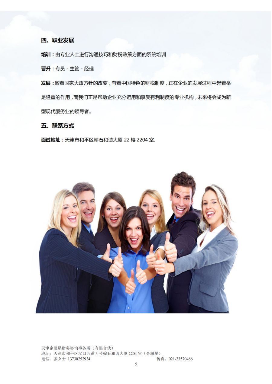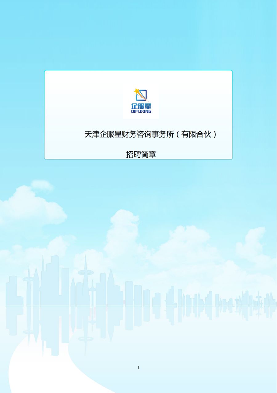 天津企服星财务咨询事务所(有限合伙)2021招聘简章